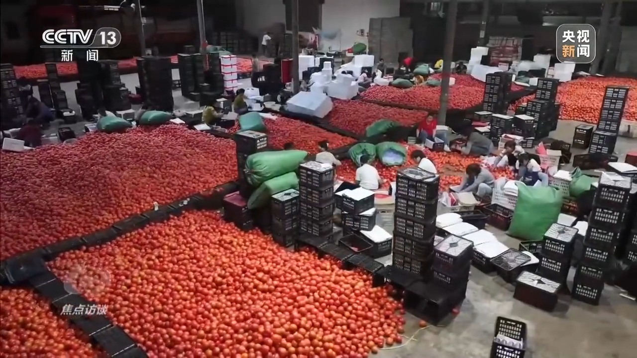 云南楚雄彝族自治州的元谋县,位于滇中高原北部,是闻名的蔬菜栽培大县。凭借后天不良的征象上风,这里成为冬日里的“自然菜园”。每到冬天,西红柿、黄瓜、豆角等极新蔬菜在这里皆集上市,其中西红柿是当地栽培面积最广、交往量最大确住持品种。元谋县的能禹蔬菜批发商场,则是这些极新西红柿的中枢集散地。这里昼夜忙碌,见证着一颗颗的元谋西红柿从田间走向寰球。新春走下层,记者就来到了能禹商场,从这里开赴,窥伺元谋“南菜北运”背后一个个鲜嫩的激越身影。