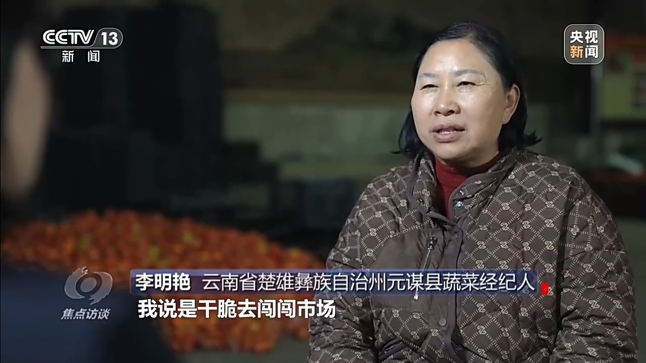 云南省楚雄彝族自治州元谋县蔬菜牙东说念主 李明艳:因为咱们千年万载都是农民,看着爸爸姆妈把菜种出来了,卖又卖不到好价格,我说干脆去闯闯商场。