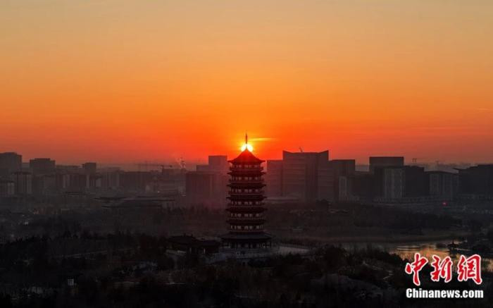 雄安悦容公园日出答应。中新社发胡忠摄