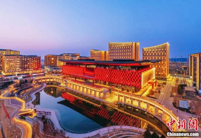 雄安商务劳动中心夜景。中新社记者韩冰摄