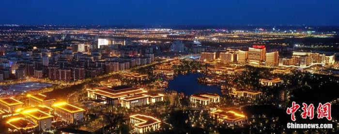 雄安建造夜景(贵寓)。开始中新视频