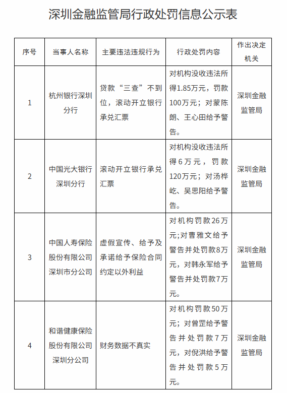 3月27日晚,深圳金融监管局发布了最新的行政不停信息公示表,指向深圳辖区多个金融机构,触及股份行、城商行、国有保障机构等。